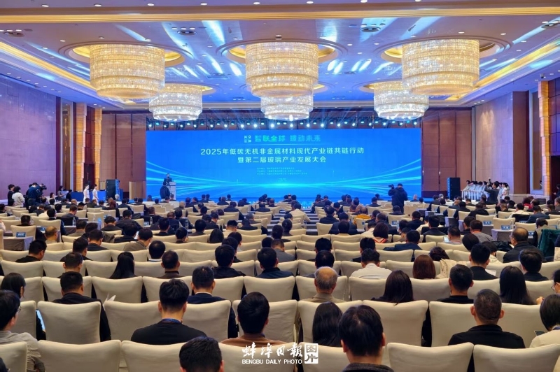 11月7日上午,2025年低碳无机非金属材料(玻璃)现代产业链共链行动暨第二届玻璃产业发展大会在蚌开幕。