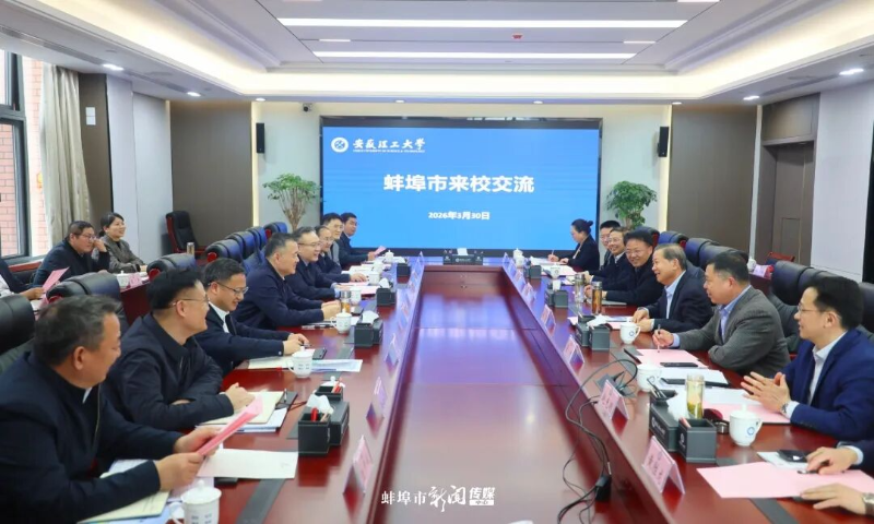 余玉刚、袁亮在交流中表示,蚌埠作为老工业基地城市,科教资源丰富,产业基础扎实,近年来智能传感、新型显示等新兴产业发展的势头令人瞩目。当前,安徽理工大学正围绕“双一流”创建目标,全面深化教育综合改革,着力构建高水平开放办学新格局。学校将聚焦科技创新和产业创新深度融合,精准对接蚌埠产业需求,发挥学校学科、人才、科研优势,与蚌埠双向奔赴、深化协同,把安徽理工大学蚌埠产业研究院打造为服务地方、服务产业的科创载体,推动校地双方在人才培养、成果转化、学生就业等方面取得更多务实合作成果,为蚌埠打造“淮河明珠、智造之城”贡献更大力量。(记者 李扬 文 陈昂 图)